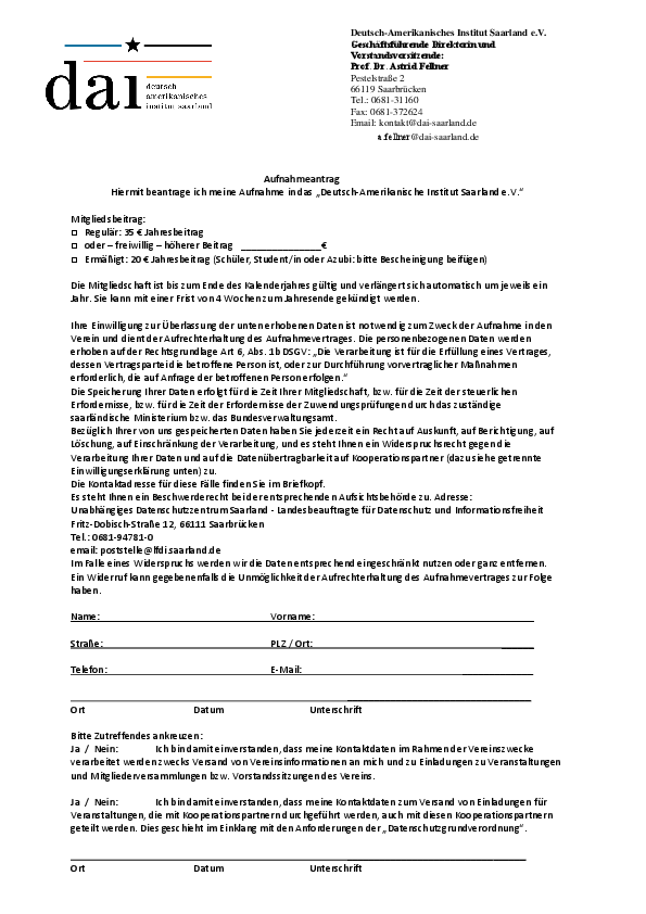 Aufnahmeantrag