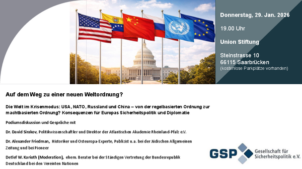 Kooperationsveranstaltung der Gesellschaft für Sicherheitspolitik e.V. mit dem Verband der Reservisten der Bundeswehr e.V. Landesgruppe Saarland, dem Deutsch-Amerikanischen Institut (DAI) Saarland, der Deutsche Atlantische Gesellschaft und der Union Stiftung